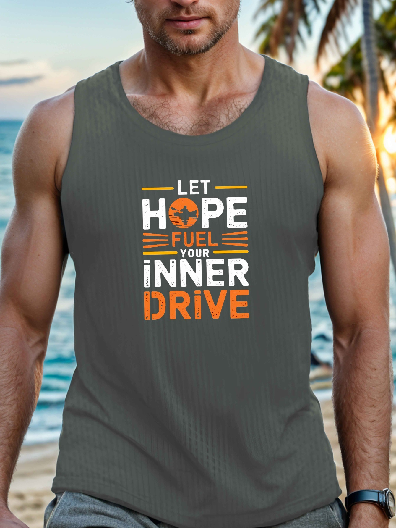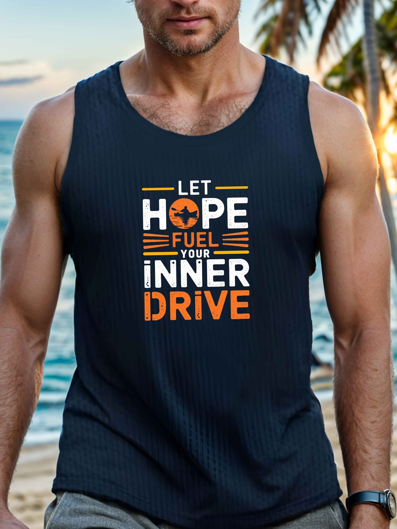 Men's Breathable Polyester Tank Top - Casual Geometric Print, Crew Neck Sleeveless Shirt for Summer Fitness & Outdoor Activities